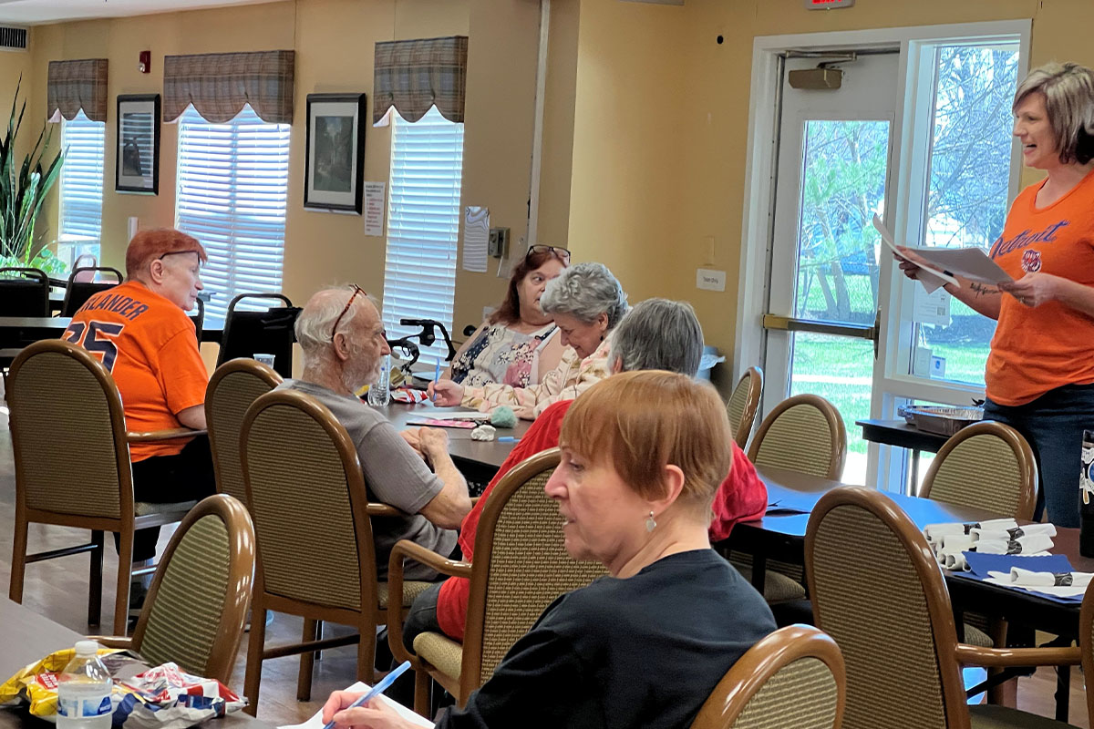 Residents at The Village of Warren Glenn play Tigers trivia during commercial breaks as they cheered on the Tigers!